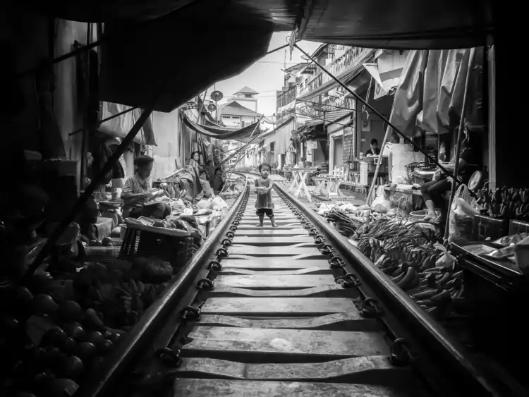For photographers seeking a truly immersive experience of local life, the local wet market is undoubtedly the best place to do so. Located at Maeklong Railway Station in Samut Songkhram Province, Thailand, this popular market is situated along a roughly 100-meter stretch of railway tracks. While it's often called "Thailand's most dangerous wet market," it's certainly one of the most eye-catching.