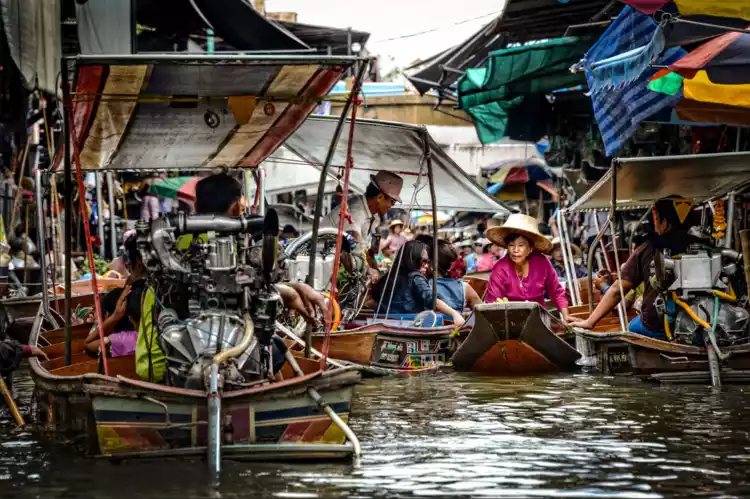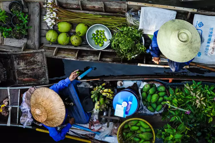 Shooting time: All day at Damnoen Saduak Floating Market, you can take photos on the shore first, and then take a boat on the river to experience the local characteristics more closely.