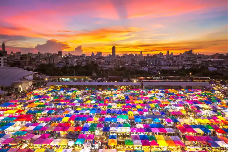 The most down-to-earth culinary tradition is night market culture. Due to its geography and climate, Thailand boasts a rich night market culture, with each city boasting several renowned ones, and Bangkok is no exception. There's the Nova Ferris Wheel Night Market, nestled on the banks of the Chao Phraya River, the weekly Chatuchak Weekend Night Market, and, arguably, the most photogenic and eye-catching of Bangkok's many night markets.