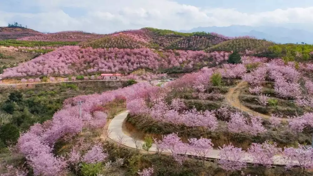 The cherry blossoms at Yaojia Village in Sanming, Fujian, have recently entered their peak viewing season. Nearly 300,000 cherry trees are in romantic bloom, creating a breathtaking spectacle that has attracted numerous visitors, with thousands flocking daily to check in. The cherry blossoms here stretch across several hills, covering over 2,000 acres. The wind-driven "rain" of cherry blossoms, like a slow-motion shower, gently and heartwarmingly touches the heart.