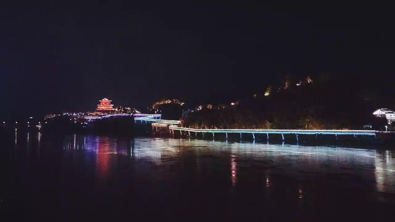Next to the cable bridge is the Shaxian Qifeng Diecui Park Pier. The pier has attracted many tourists with its unique shape and intoxicating night view, and has become one of the most popular tourist spots in Shaxian.