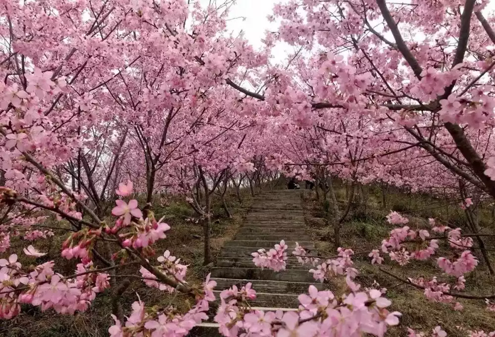 There are 230,000 cherry tree seedlings planted here, with 17 varieties: Pink Lady, Perfume Cherry (Hatsubijin), Pink Yoshino Cherry, Yangmingshan Cherry, Oshima Cherry, Yaezakura, Peony Cherry, Fugen Elephant Cherry, Weeping Cherry, Hikan Cherry, Guanshan Cherry, Ota Cherry...