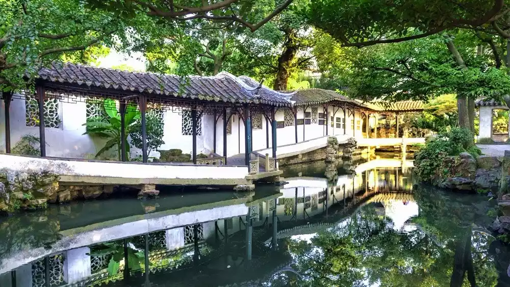 He Garden boasts four "firsts in the world" in Chinese garden art. The most distinctive architectural feature is the 1,500-meter-long double-story corridor, known as the "First Corridor in the World." This architectural feature offers the garden's extensive accessibility and a beautifully serpentine design, unique in Chinese gardens. The other four firsts include the "First Mountain in the World" at Pianshi Mountain House, a unique example of the stone-stacked masterpiece by the master painter Shi Tao, from which one can see the famous "Moon in the Water"; the stained-glass window bands, composed of lattice windows and hollow windows, known as the "First Window in the World"; and the Water Center Pavilion in He Garden, a rare water-based opera stage in China, known as the "First Pavilion in the World" for viewing opera.