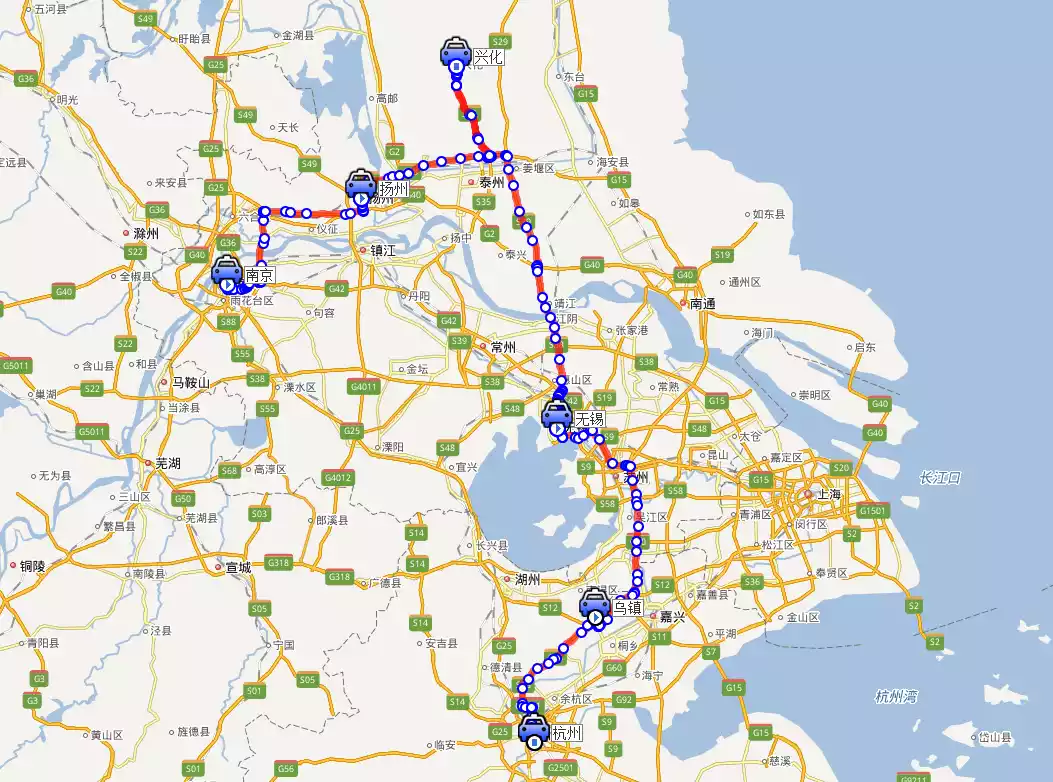 Nanjing-Yangzhou-Xinghua-Wuxi-Wuzhen-Hangzhou, the journey is about 613 kilometers (6 cities in East China).