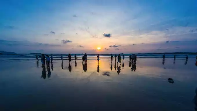 The beach here is better quality and wider. Girls wear skirts and run barefoot on it freely, while boys chase and take pictures all the way.