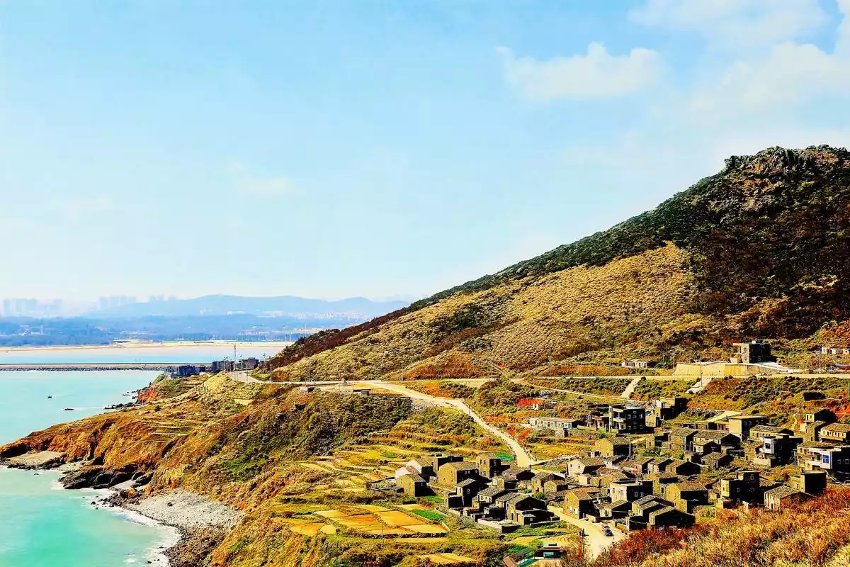 This is probably one of the most beautiful island-circling roads in China. At 70 mph, that's definitely too fast. If you're on a tour group, be sure to ask the driver to drive at 40 mph. A large bay passes over Yuyu Village, and a 270-degree, expansive ocean vista opens up before your eyes.