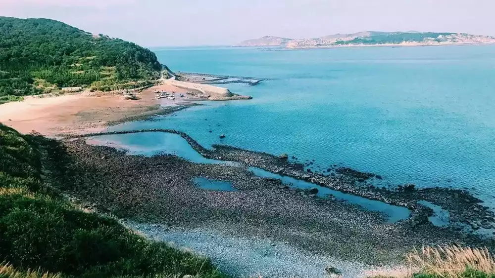 Maotougan, located in the northeast corner of the island, gets its name from its resemblance to a cat's head. Visitors have praised it as a paradise on the sea. Stone houses are nestled among lush greenery, nestled against the mountain and facing the sea. The waters are a deep, mirror-like green, making them particularly impressive.