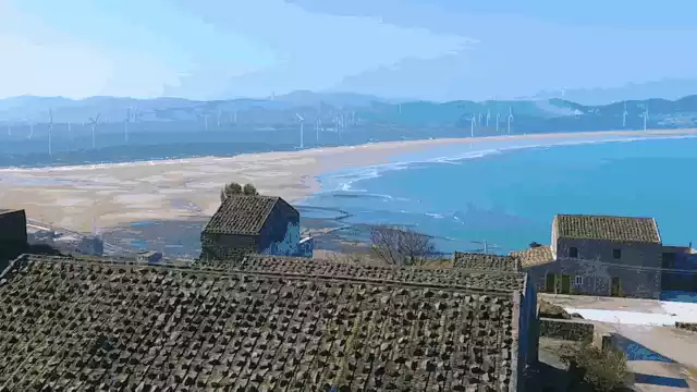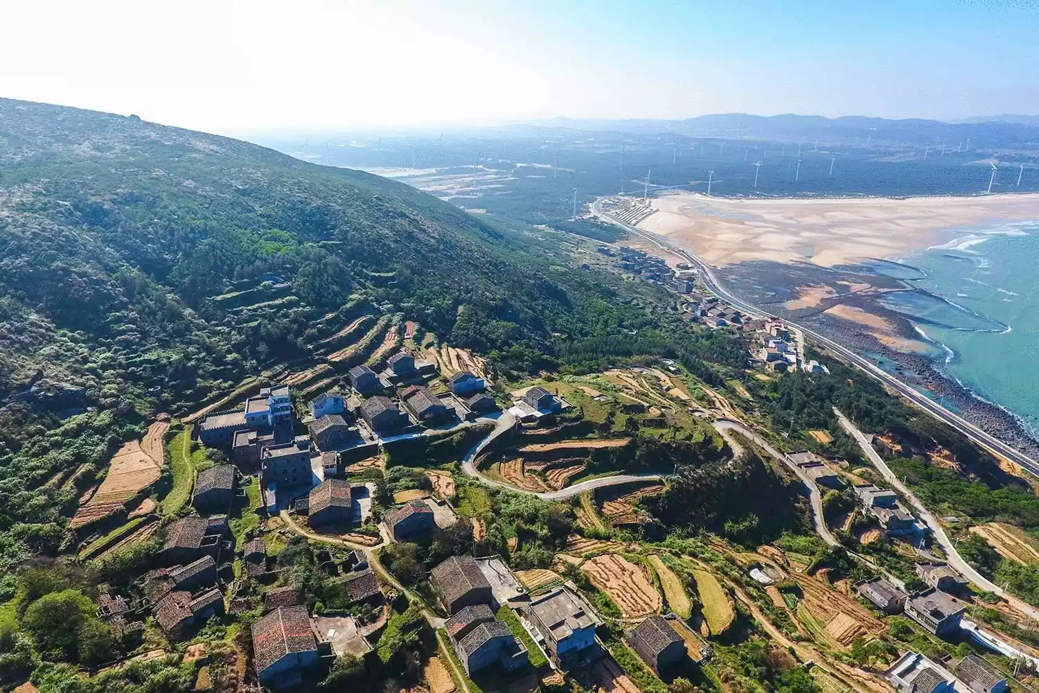 "Mountains, sea, village, windmills, and mudflats" may be the most pleasant island scenery painting~