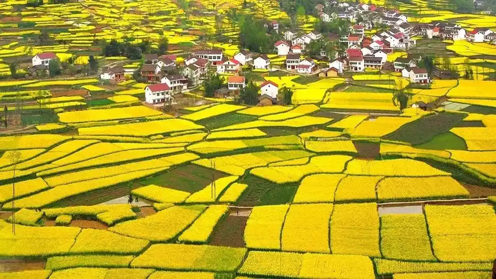 In Hanzhong, nestled in the Qinba Mountains, blooming rapeseed flowers, interspersed with wheat seedlings and lush green mountains and waters, create a vibrant, yellow ocean. Millions of acres of flowers bloom simultaneously, creating a dazzling golden shimmer between heaven and earth, transforming Hanzhong into a vast landscape bonsai, a breathtaking sight across the Hanzhong Basin. Follow us as we explore a different side of rural Hanzhong.