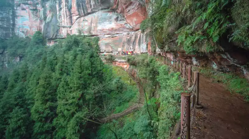 Hike along the ravine, discovering distinct Danxia landforms on either side. Straddling the border between Xishui and Jiangjin, Guizhou, you'll experience both regions. Admire rare tree species like the Alsophila spinulosa, often called "living fossils." This is a classic entry-level hike suitable for all ages.
