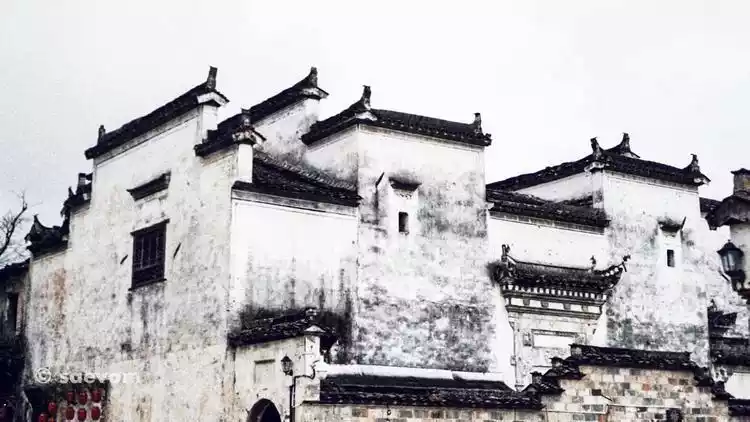 Most of the Hui-style houses in southern Anhui are connected together. The undulating layers of horse-head walls are higher than the roof ridges, which can not only block wind and fire, but also form graceful lines with uniform white walls and black tiles, which further increase the layered rhythm of the Jiangnan houses.