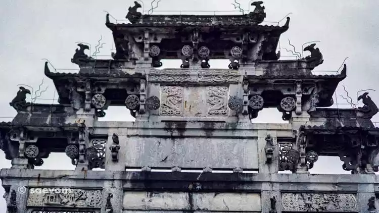 Memorial archways, also known as pailou, are typically located at the entrance or in the center of a village in ancient towns, often commemorating a person or event. They can be iconic landmarks, or simply serve as gates or decorative structures. Civilian memorial archways are typically constructed of stone or wood, and their size is indicated by the number of rooms, columns, and roofs. Four-pillar, three-room archways are the most common, while six-pillar, five-room, and above archways are considered large. During the Ming and Qing dynasties, Huizhou boasted thousands of memorial archways, and the Hu Wenguang Memorial Archway in Xidi, Yi County, is considered the most elaborate of these.