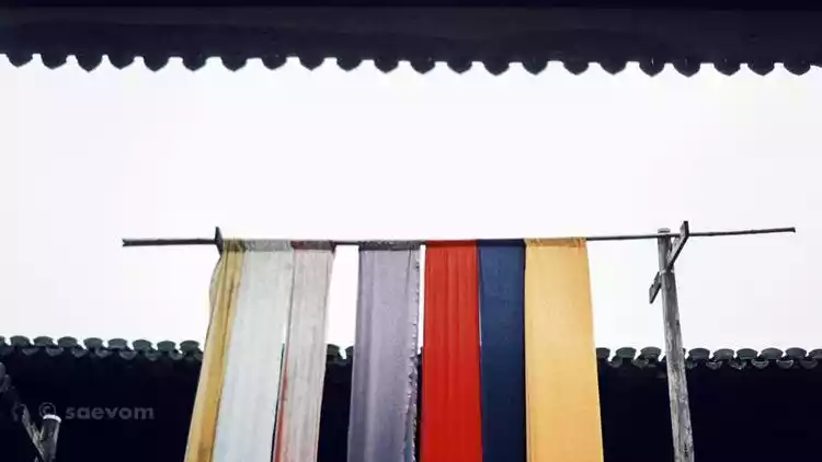 In 1989, Zhang Yimou and Gong Li filmed "Ju Dou" for seven months at the Ye Clan Ancestral Hall. The film later won the Golden Bear, the highest award at the Cannes Film Festival. Today, a tall cloth drying platform and several unnamed weaving and dyeing tools remain within the hall, frozen in time. The coarse texture of the dyeing workshop's fabrics cannot hide the traces of time. The hanging dyed cloth flutters and dances, as if telling us something...