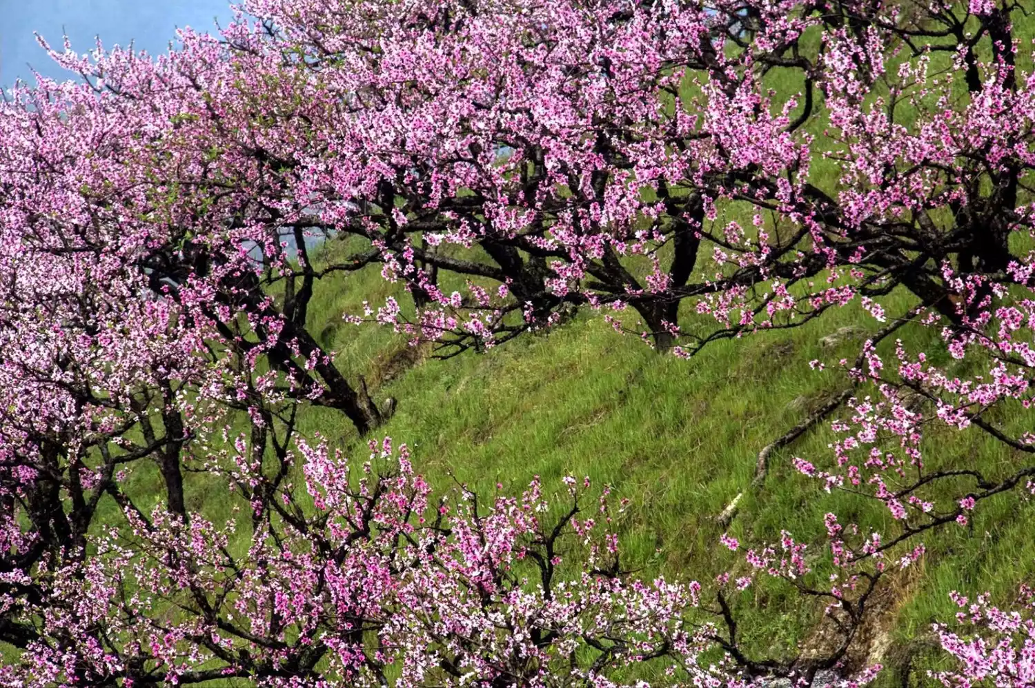 There are many varieties of peach blossoms in Yuandong, mainly white peach trees with pink and rose-red colors. The branches are low and the planting is neat and dense, suitable for close viewing. Peach blossoms are a major garden flower in China. The trees have a relatively graceful posture and the flowers are abundant and gorgeous. It is one of the main flowering tree species in spring. The peach blossom area in Yuandong is large and is located in the basin. Visitors can easily appreciate the grand spectacle of thousands of peach trees in bloom from the road.