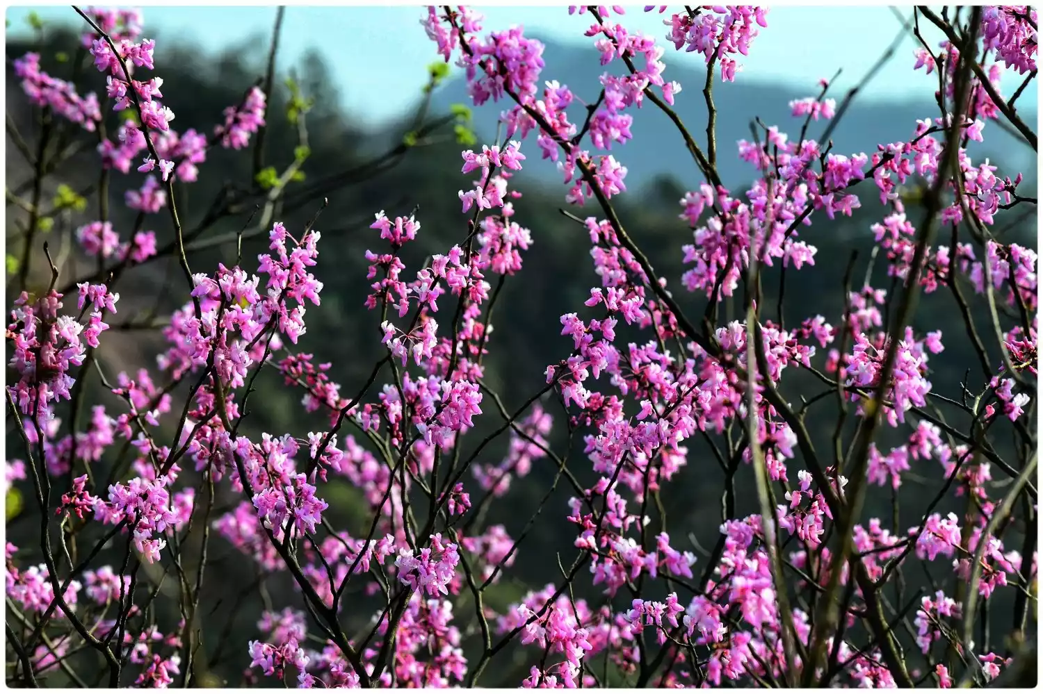 People who go to Zhuanlun Rock for hiking, flower viewing, and incense burning often start from here. The wild redbud flowers here are small and dense. Because they are ornamental plants that bloom before leaves, when the redbud flowers are in full bloom, the branches are only flowers without leaves. The flowers are bright and lovely, and the bark and peduncles can also be used as medicine.