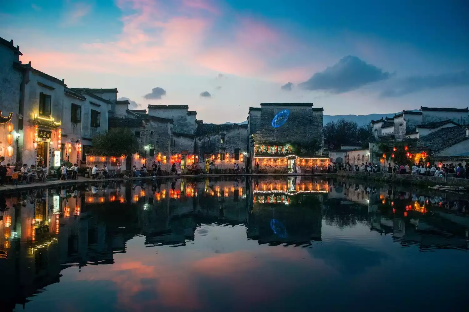 The "Moon Pond," as the locals call it, is also known as the "cow's stomach." Its waters are perpetually emerald green, its surface as smooth as a mirror. Bluestones pave the perimeter, and whitewashed walls and tiles line the pond in an orderly fashion. Blue sky and white clouds cascade down into the water. In the evening, as the crowds gradually disperse and strings of lanterns light up, you can enjoy a hearty dinner and join the villagers in enjoying the nighttime beauty of this ancient village.