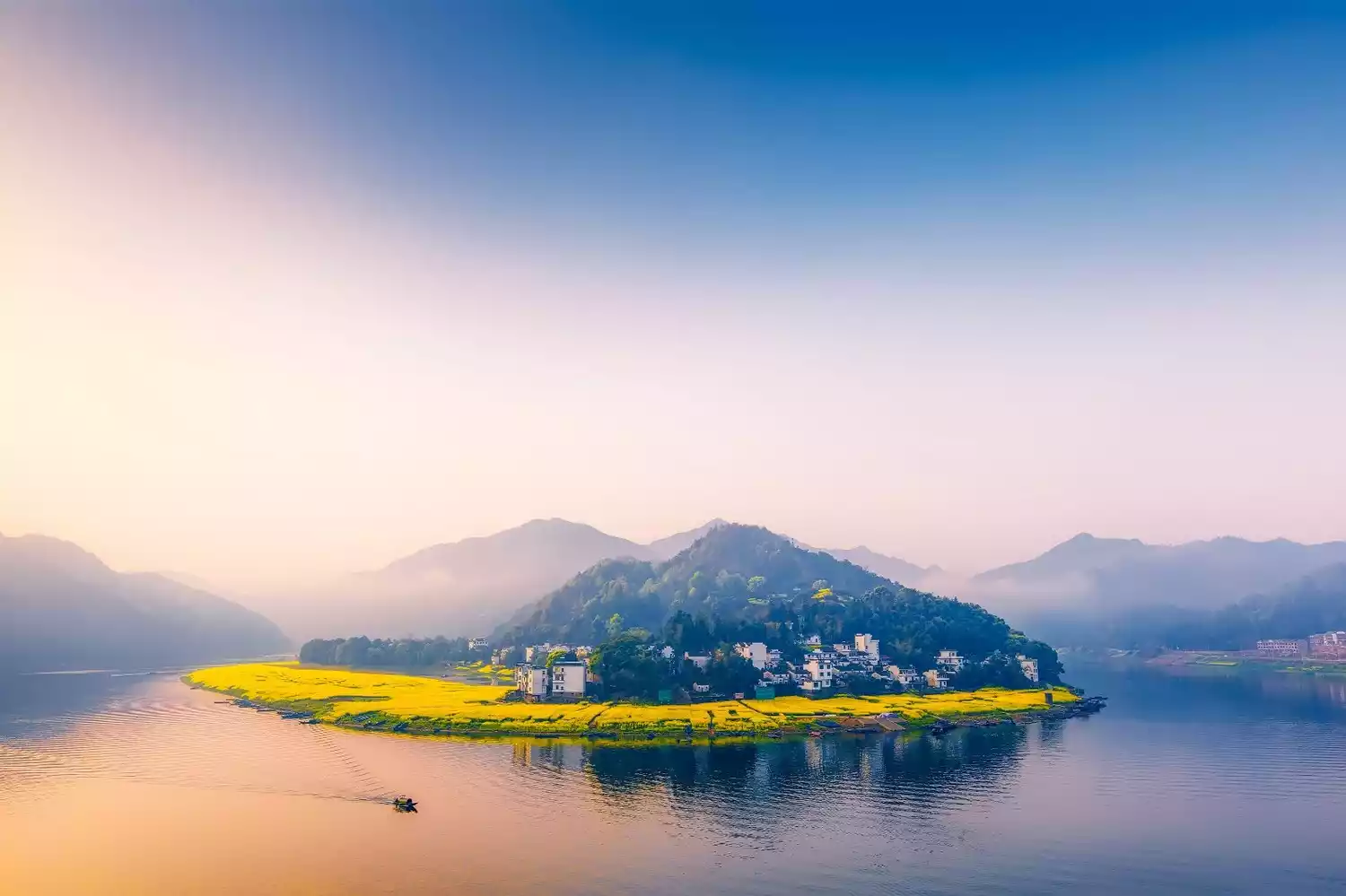 Located in Shendu Town, She County, Huangshan City, the Xin'an River Landscape Gallery Scenic Area stretches approximately 100 miles. The ecological landscape along its banks presents a three-dimensional landscape of "high mountain forests, mid-mountain tea, low mountain fruit, and aquatic fish." Ancient Hui-style dwellings are dotted among the lush mountains and clear waters, earning it the nickname "the Danube of the East." The scenery changes throughout the year, resembling a flowing landscape painting.