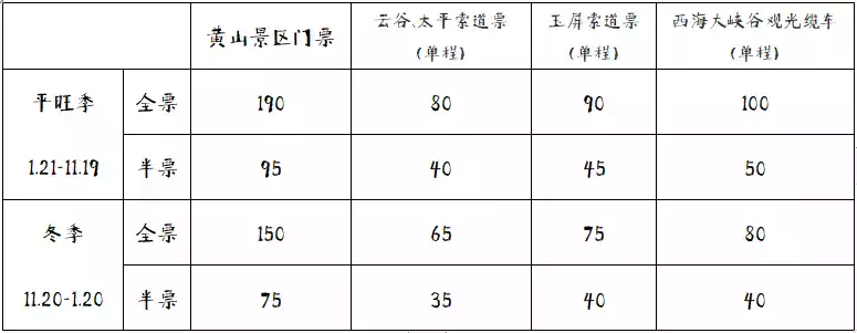 (For details on half-price or free ticket policies, please visit the Huangshan Scenic Area Administration http://hsgwh.huangshan.gov.cn/)