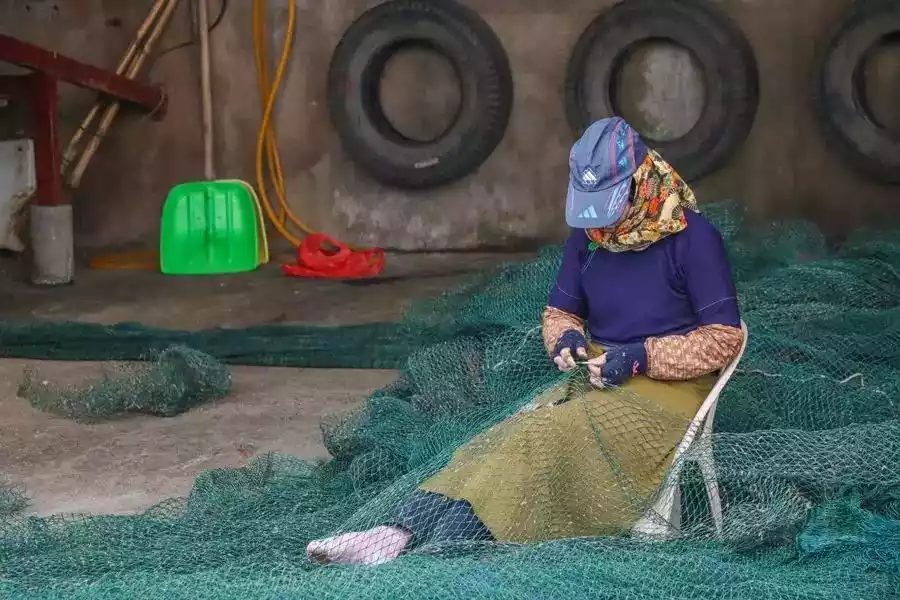 Along the way you can see fishermen mending their nets, abandoned boats or boats being built.