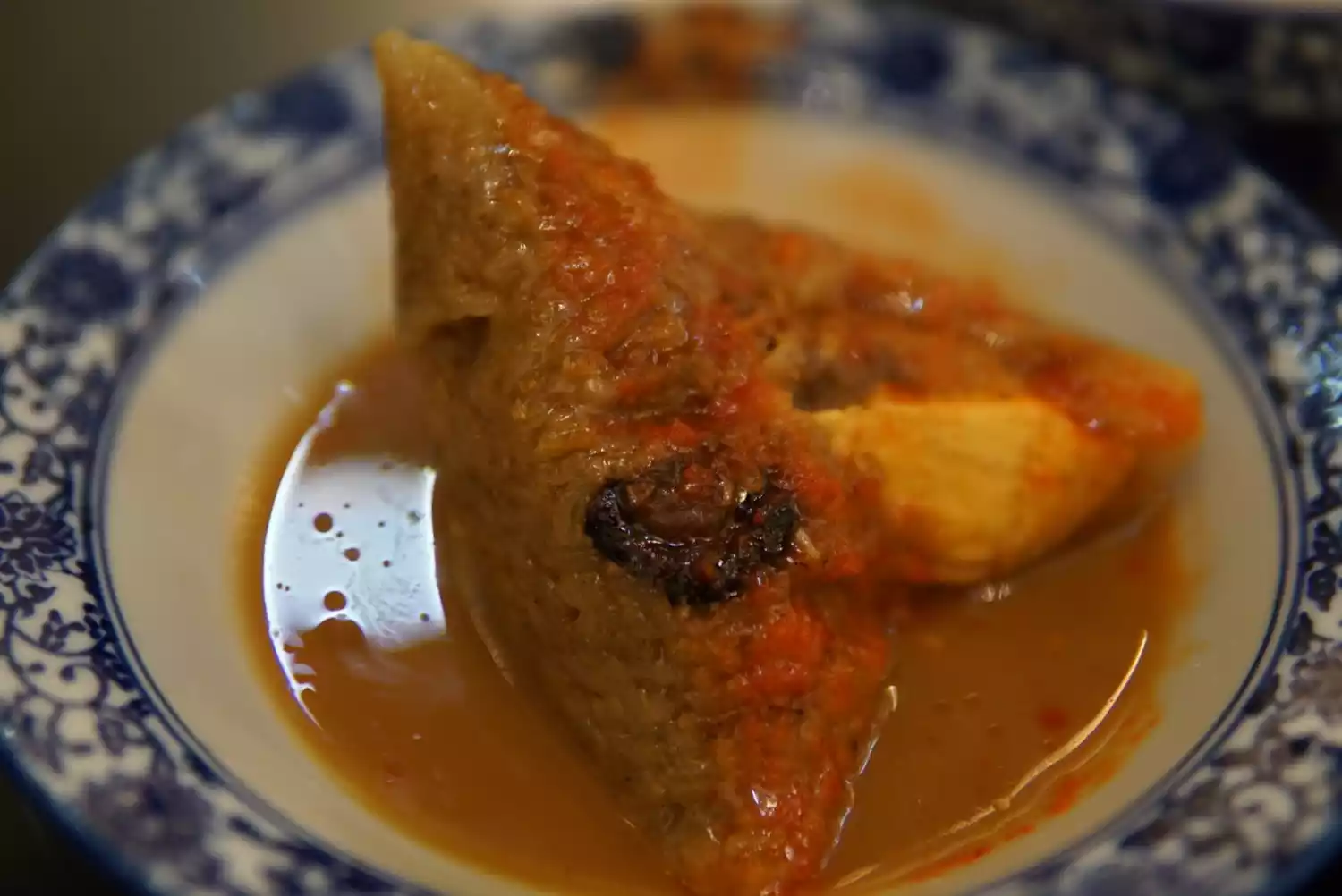 In Quanzhou, the correct way to eat rice dumplings is as follows: first, spread the rice dumplings out and eat them together with the juice in the bowl, or add shacha sauce, red chili sauce and other condiments to make them more flavorful.
