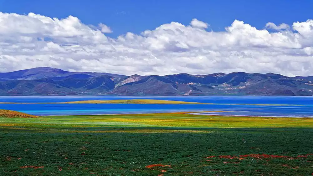 The water of Donggecuo Lake comes from Amnye Machen. Located in the source area of the Yellow River, Donggecuo Lake also has a large wetland and a fascinating red grassland. When the deep autumn colors come around National Day, the meadows by the lake will be transformed into eye-catching red grass beaches, and the scenery is breathtaking.