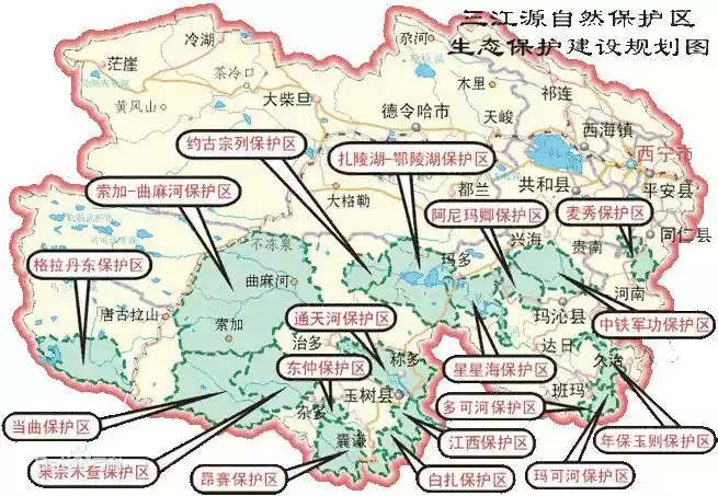 The Sanjiangyuan Nature Reserve is located in the heart of the Qinghai-Tibet Plateau, in the southern part of Qinghai Province. It borders the Tibet Autonomous Region in the southwest, Sichuan Province in the east, and Dulan County of the Mongolian and Tibetan Autonomous Prefecture of Qinghai Province in the north. There are multiple branch nature reserves within the entire area.