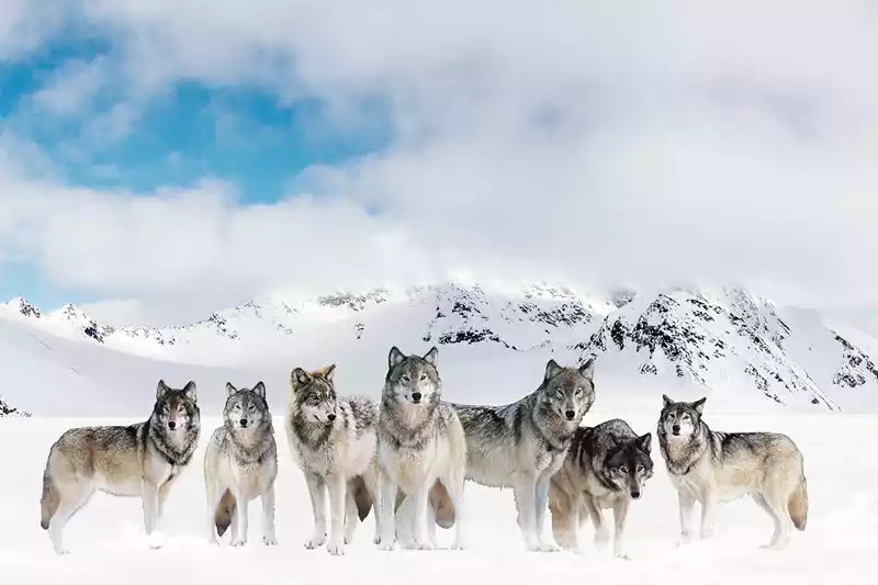 There are still groups of wolves active on the Zhahe Wild Wolf Beach in the Sanjiangyuan Nature Reserve. Wolves are predators and wolf packs are composed of nuclear families, including a pair of spouses and their children, and sometimes also adopted underage wolf cubs.