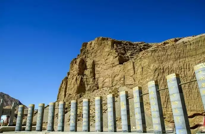 Wuji Longfeng Palace is a Taoist temple. It is a rare resting place on the way to Hoh Xil. The stone gate here is magnificent. There is a landscape of eighteen pillars in the square in front of the temple. There are statues of Queen Mother of the West and others in the main hall.