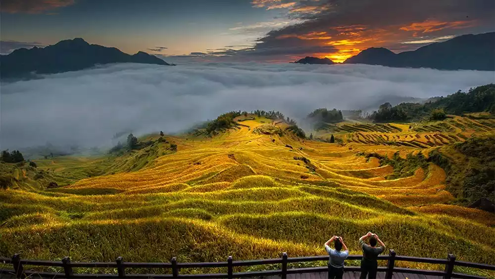 Terraced fields, sea of clouds, waterfalls, ancient temples, ancient covered bridges, ancient trees... In the high mountain basin at an altitude of 1,030 meters, there is a small town in the clouds - Yunzhong Daliang, Shisi Temple, and Metasequoia King, which is known as the "Paradise in the Clouds".