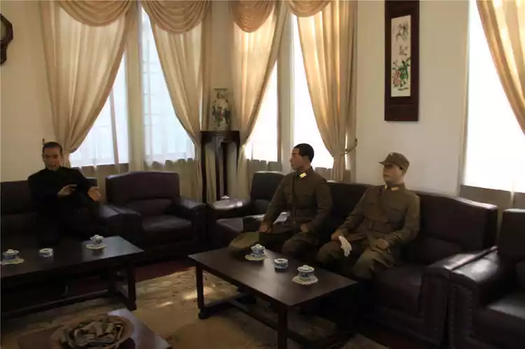 The mansion's architectural style is particularly distinctive. Its three Western-style buildings, arranged east and west, are constructed of brick and wood, surrounded by a blue brick wall. They exude a solemn, ancient charm yet remain elegant and magnificent. The reception room on the first floor features a group of lifelike portraits of Zhou Enlai, Zhang Xueliang, Yang Hucheng, Soong Mei-ling, and Soong Tzu-wen, vividly recreating precious historical moments from the peace negotiations surrounding the Xi'an Incident.