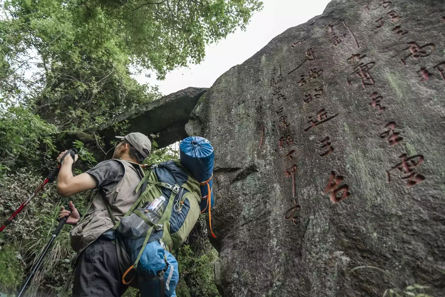 As you near Banshan Temple, you'll see the "Chuanyan Poetry Forest," a section of the trail that I highly recommend. It's a small cavern you have to crawl through on your hands and knees. Over 40 ancient and modern poems praising Mount Nanyue, written by contemporary calligraphers, are inscribed on the rocks. It truly lives up to its name: the "Chuanyan Poetry Forest."