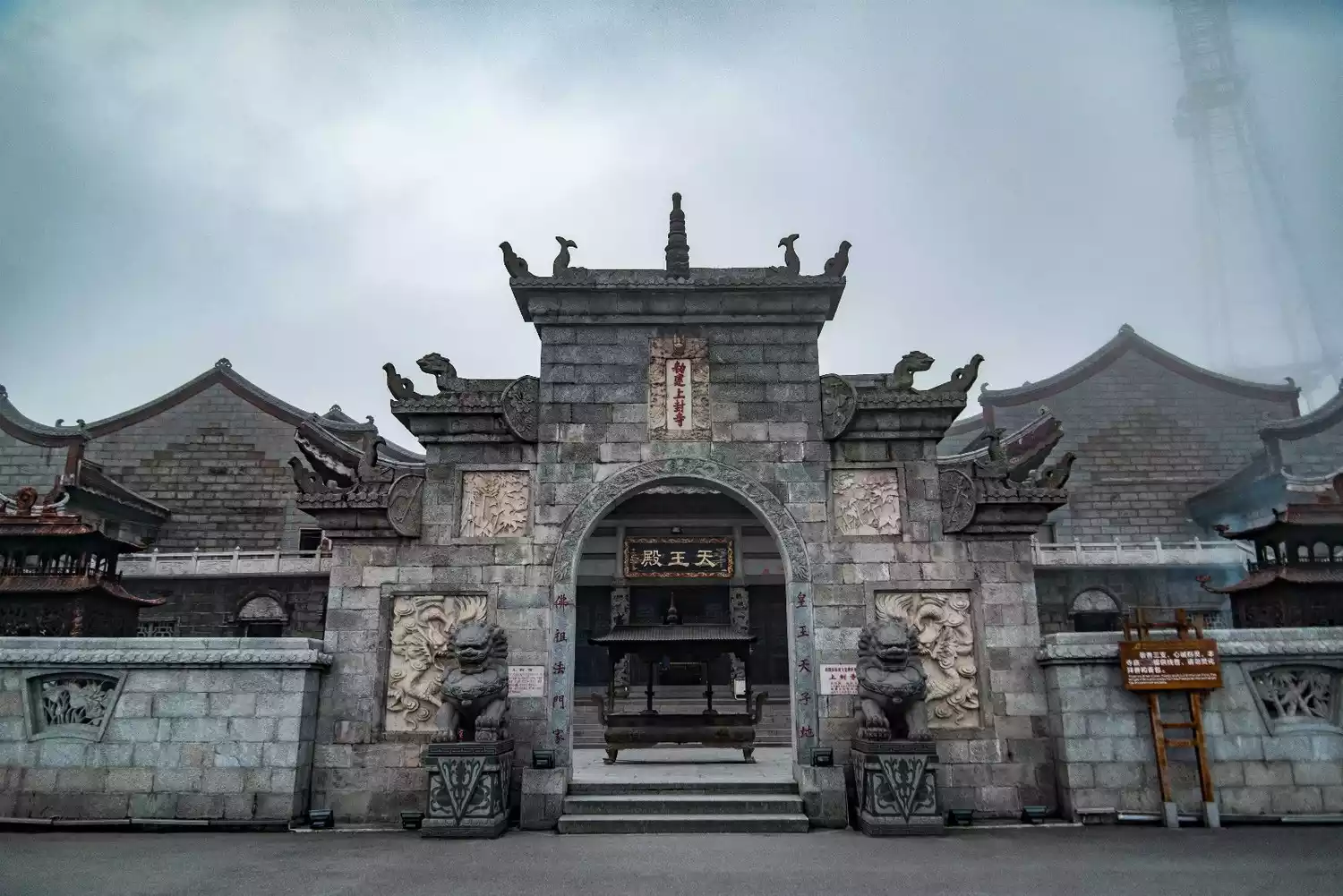 In mythology, the Nantianmen Gate is the entrance between the human world and the immortal realm; passing through it leads to the celestial realm. Hengshan Beidou Ridge, also known as the Nantianmen Gate, is dedicated to Xuanwu Zushi, the Taoist deity of the north. Renovated in the first year of the Tongzhi reign of the Qing Dynasty, the existing structure consists of stone walls and iron tiles. The tiles typically weigh over 20 jin and are inscribed with the reign titles of Qianlong, Daoguang, and Tongzhi.