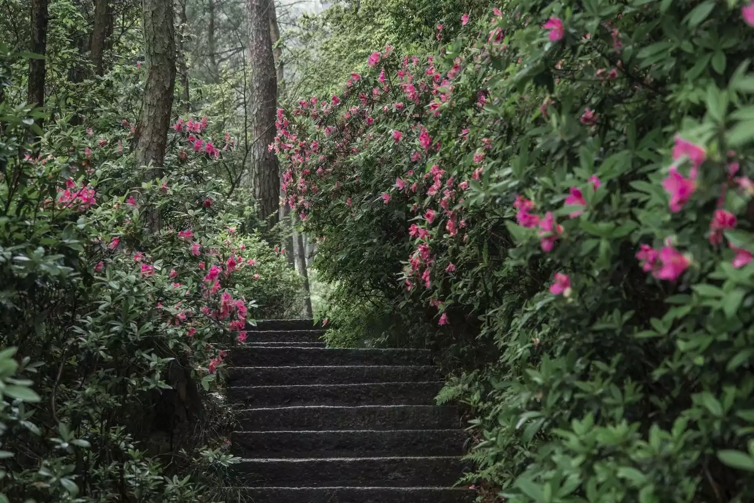 There are few cliffs in Hengshan, and the mountains are continuous and there are many forests. In April, the mountain flowers in Fanyin Valley are in full bloom, and there are several flower paths in succession.