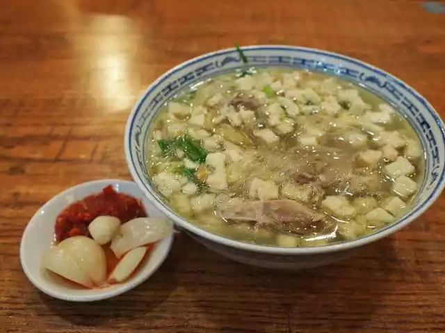 Many Xi'an residents go to Pao Mo early in the morning for the first soup, supposedly because it's the most fragrant and rich. The quality of the soup itself depends on both the quality of the soup itself and the chef's "broken soup" process, which involves adding water to the original broth. When watching Pao Mo being prepared, you'll see the chef scooping soup from two separate pots into the steaming ladle. This "broken soup" process is known as "breaking the soup."