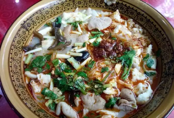 With a prime location and a sophisticated atmosphere, their Pao Mo (pao mo) is typically prepared with a water-filled broth, unless otherwise specified. This style is particularly popular with tourists and young women. The Pao Mo here is light on oil, salt, and the broth is delicious, making it perfect for first-timers. You can break the mo yourself or use a pre-made machine. However, their one major flaw is the pickled garlic; instead of having a refreshing crispness, it's left with a rather unpleasant, wilted texture.