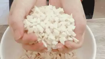 "Pinching" means pinching the steamed bun into pieces the size of soybeans. The pieces should be uniform in size and not lumpy or crumbly, so that the five flavors of the soup can be absorbed into the steamed bun.