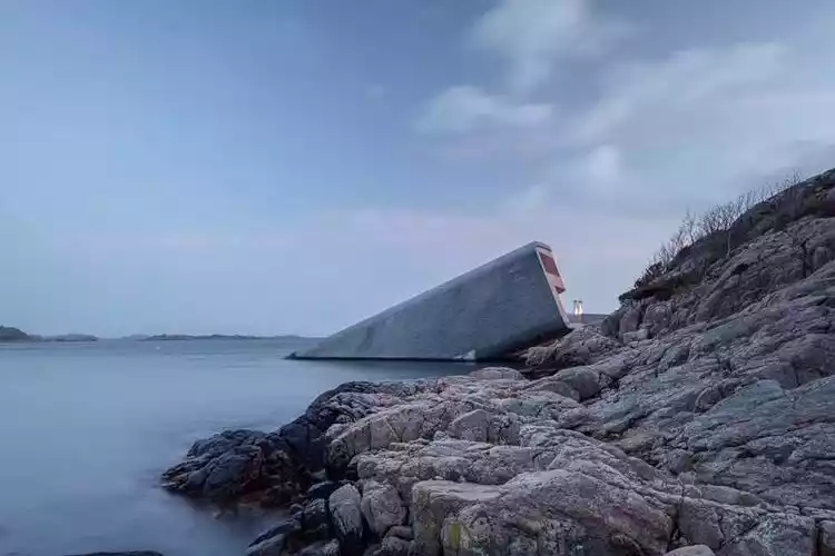 The underwater restaurant is located on the coast of the southeasternmost corner of Norway. The name of the restaurant "Under" means "miracle" in Norwegian. This name probably reflects the architect's expectations for it.