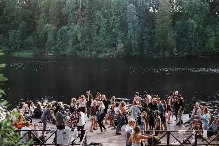 Most Nordic locals gather with family and friends at their holiday cottages on Midsummer Eve, enjoying saunas, swimming, barbecues, and bonfires on the shore under the midnight sun. Even those living in southern Northern Europe who don't see the "sun never sets" summer can still enjoy a Midsummer Eve without darkness.