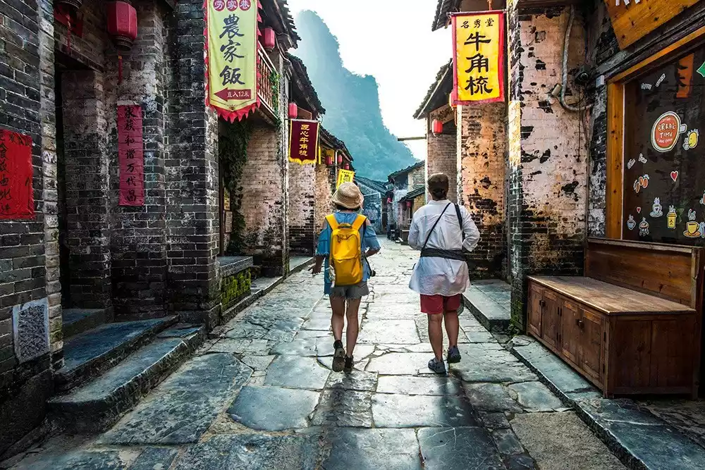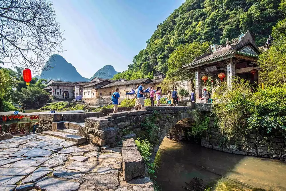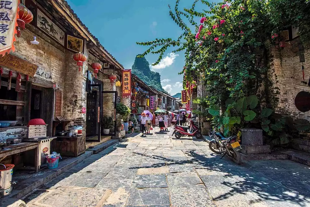 Compared to the more widely known Yangshuo, Huangyao is a hidden gem, lesser-known and less visited, preserving its pristine tranquility. Nestled between mountains and water, and surrounded by majestic, emerald peaks rising from the plain, the ancient town only developed during the Ming and Qing dynasties due to commercial development.