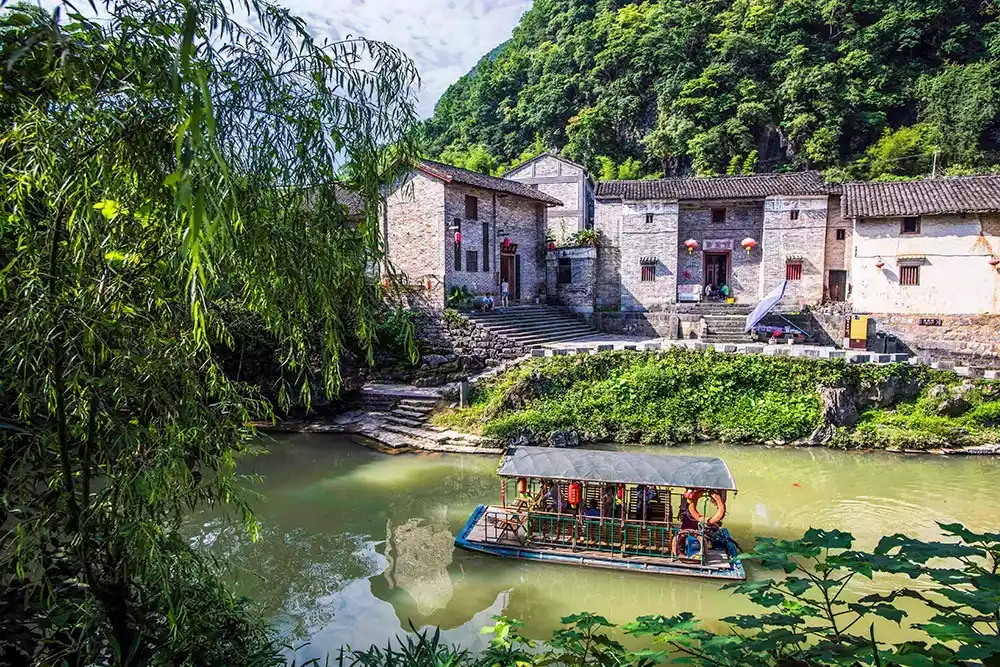 The Yao River, Xiaozhu River and Xingning River are as clear as mirrors and meander through the ancient town. There are small bridges, flowing water, towering ancient banyan trees and lush bamboos. Green mountains and green waters are interdependent, and green waters are accompanied by residential houses. The landscape is like the Li River. Compared with the natural scenery, the historical and cultural landscape of Huangyao is more distinctive.