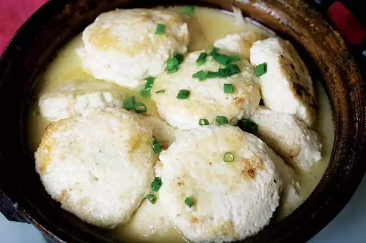 The preparation of Huangyao tofu is similar to that of other places, but the taste is unmatched. Unlike other places, Huangyao stuffed tofu is formed into small, uniformly sized and similarly shaped dumplings, so the filling remains. This dish is a common dish in every Huangyao household.