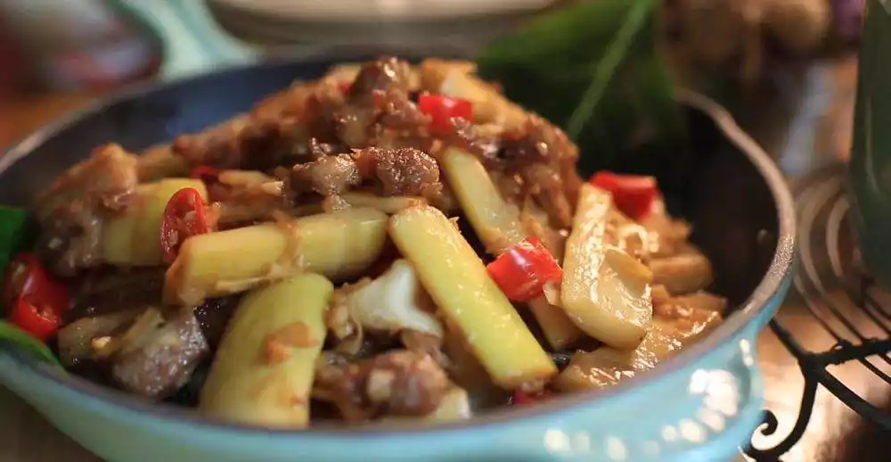 Another common way to cook bamboo shoots is to stir-fry them with pork belly. Since wild bamboo shoots have rough fibers, they taste amazing when paired with pork belly.
