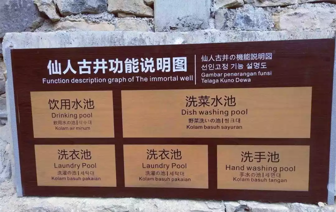 The water from the ancient wells surges year-round, regardless of drought or flood. The first well is used for food, the second for washing vegetables, and the third, fourth, and fifth wells for washing clothes, farm tools, and hands.