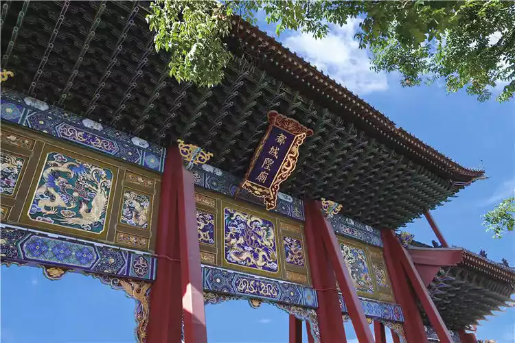 The newly built archway, modeled after the destroyed original, is unprecedented in China in its scale and high standards. Its massive pillars, sweeping eaves, carved ornaments exude auspiciousness, and painted in a dazzling brilliance, creating a delightful and captivating spectacle in the ancient capital. A street in Huifang, Lianhu District, is named "Miaohou Street" because it sits behind the City God Temple.