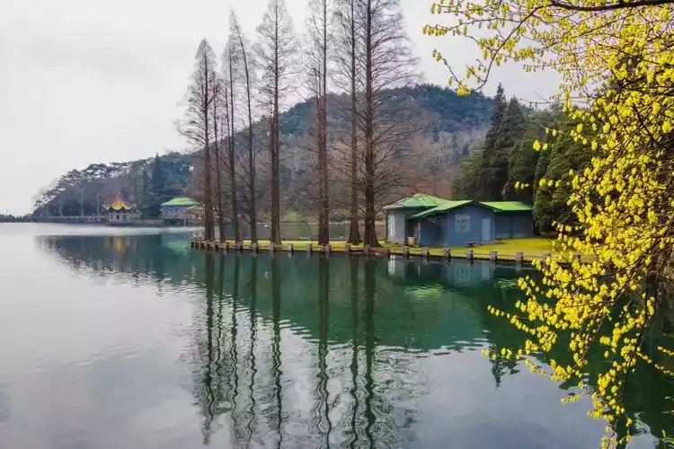 Located on the bank of Ruqin Lake, it is said that when Bai Juyi visited Mount Lu in Jiangzhou, he saw peach blossoms in full bloom here. In his poem "Peach Blossoms at Dalin Temple", he wrote, "The flowers of April on earth are gone, and the peach blossoms at the mountain temple are in full bloom." Therefore, later generations called this place "Hua Jing" and built Bai Juyi's Thatched Cottage.