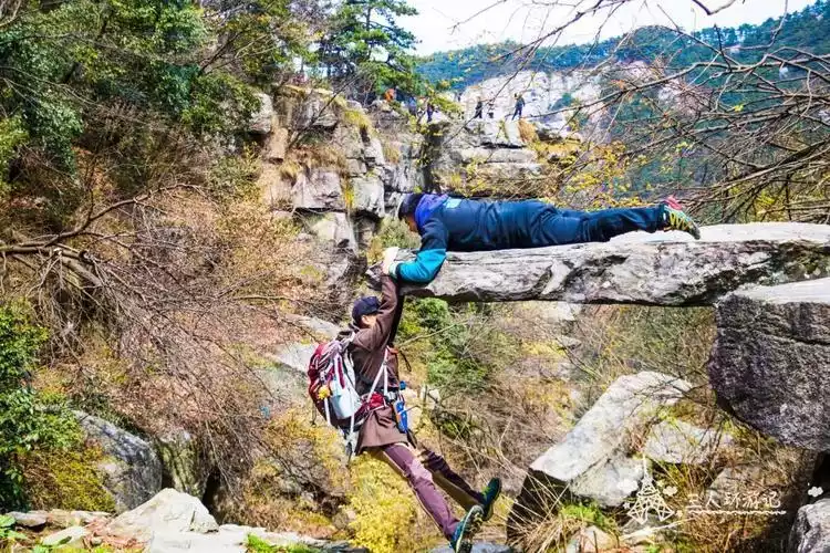 At 2,500 meters, the Sky Bridge is located at the entrance to the mountain gorge. Actually, the Sky Bridge isn't a bridge, but rather a massive rock formation. From certain angles, it resembles a broken bridge suspended above a cliff. Jinxiu Valley connects to the Sky Bridge Cliff Valley, where the strangely stacked rocks contrast with the cliffs on the opposite side, creating a perfect backdrop for creative, distorted photos.