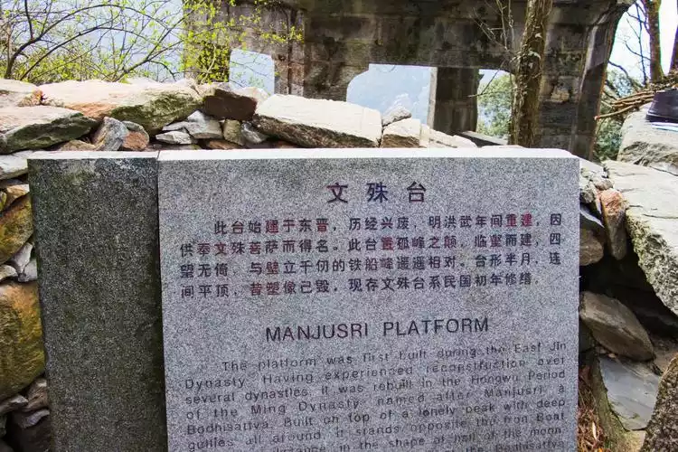 To the west is a half-moon-shaped moon-worshiping platform named Wenshu Terrace, which is a two-story stone and wood structure. The lower floor is a five-bay stone chamber with doors and windows, which can be used as a living room.