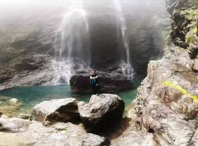 After descending a few hundred steps, you can hear the roar of the waterfall, the cascading water cascading down from the sky with a thunderous roar, and deeply experience the magnificent scenery of "a waterfall plunging three thousand feet, as if the Yellow River falls from the sky." The water is crystal clear, flowing into a turquoise pool. On clear days, the mist reflects the sunlight and creates a beautiful rainbow.