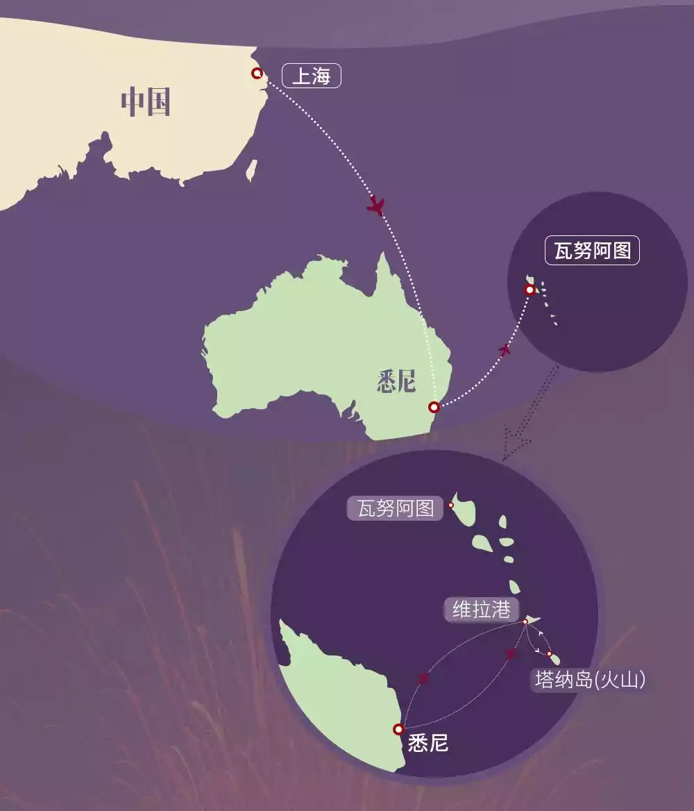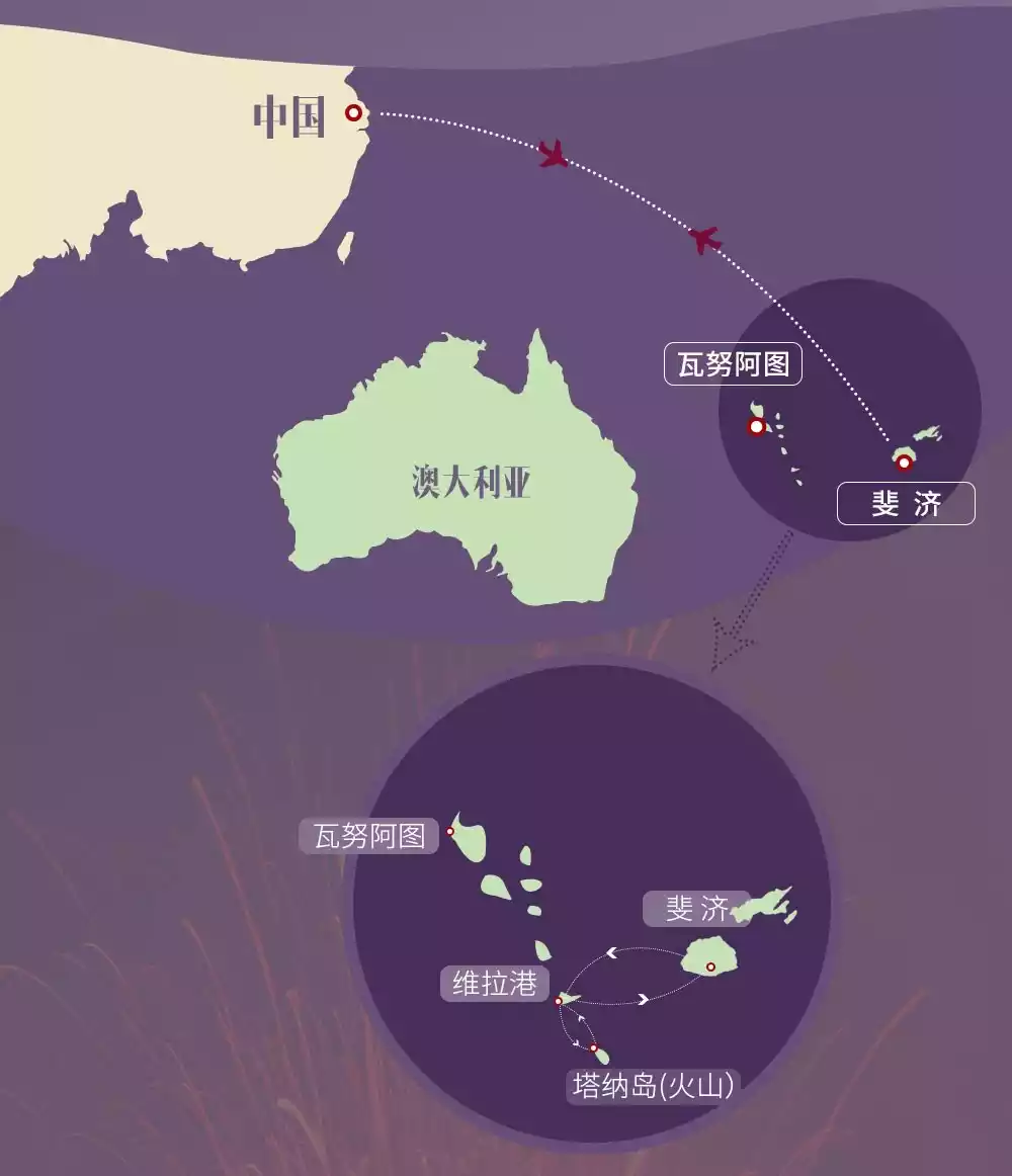 If traveling from China to Vanuatu, it's recommended to combine a trip to Australia or Fiji, as transportation can be arduous. Direct flights from major Chinese cities to Sydney and Brisbane reduce the number of layovers. Hong Kong has direct flights to Fiji, while all other cities require a layover in Hong Kong or Seoul.