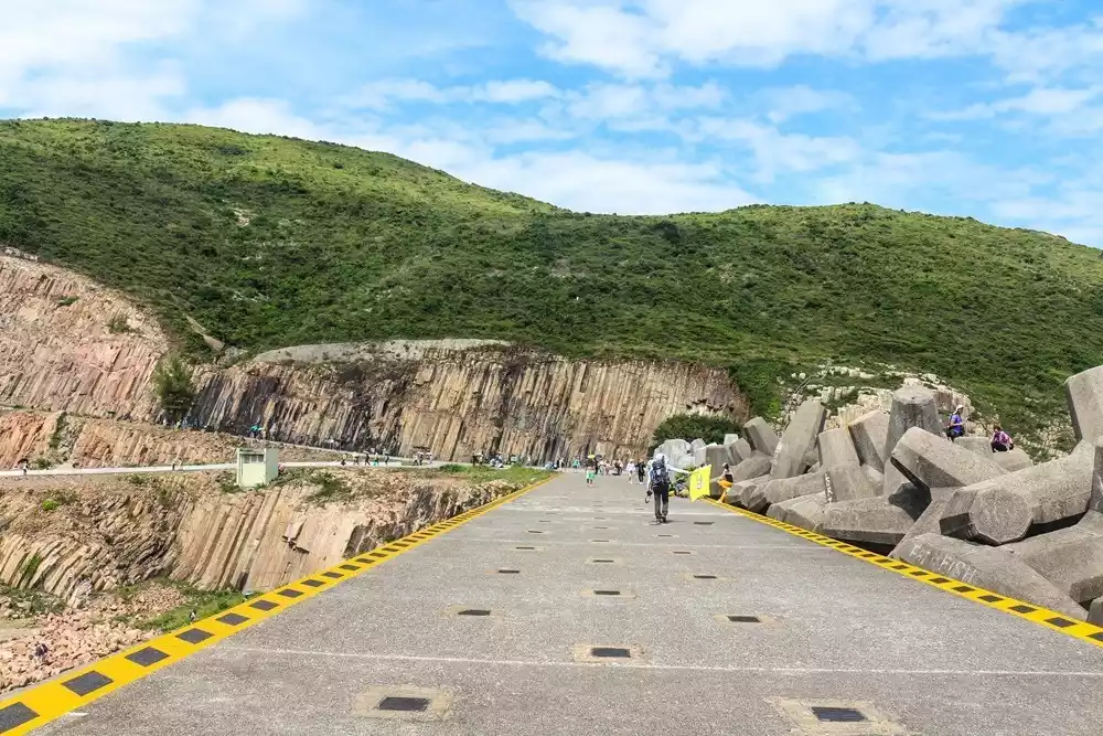 This is the junction of Sections 1 and 2 of the Mak Trail, marking the end of the highway and the beginning of the hiking trail. The Sai Kung Volcanic Rock Park is characterized by its hexagonal rock columns and coastal erosion features. These hexagonal rock columns are the largest known in the world in terms of area and volume. They are composed of tuff, an acidic volcanic ash.